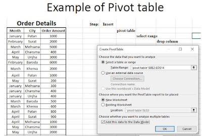 • A pivot table is like a summary table of the dataset that enables you to create reports and analyze trends.